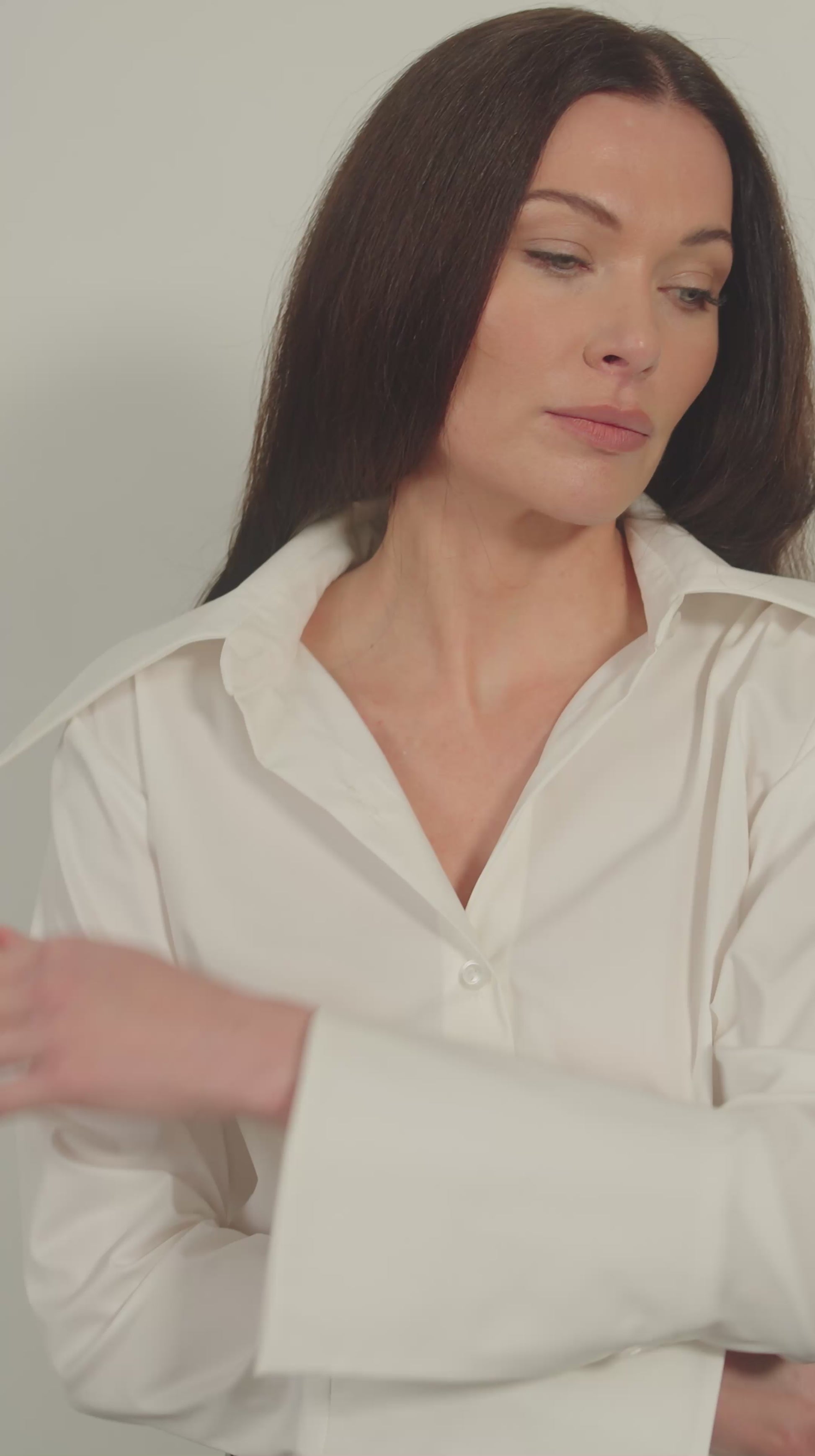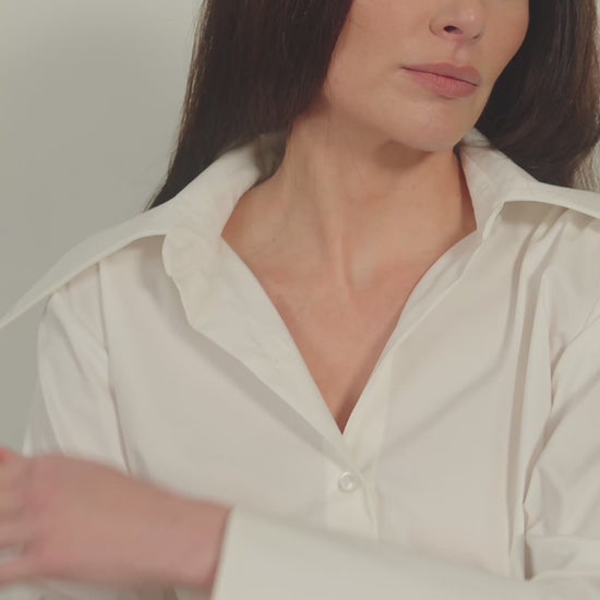 A refined cotton-blend shirt designed and produced in Dublin. The structured finish, concealed placket, and oversized cuffs create a polished, modern silhouette. Adjustable back ties allow for a personalised fit, shaping the waist without compromising movement or comfort. A versatile wardrobe essential designed to transition effortlessly from office hours to after-hours.